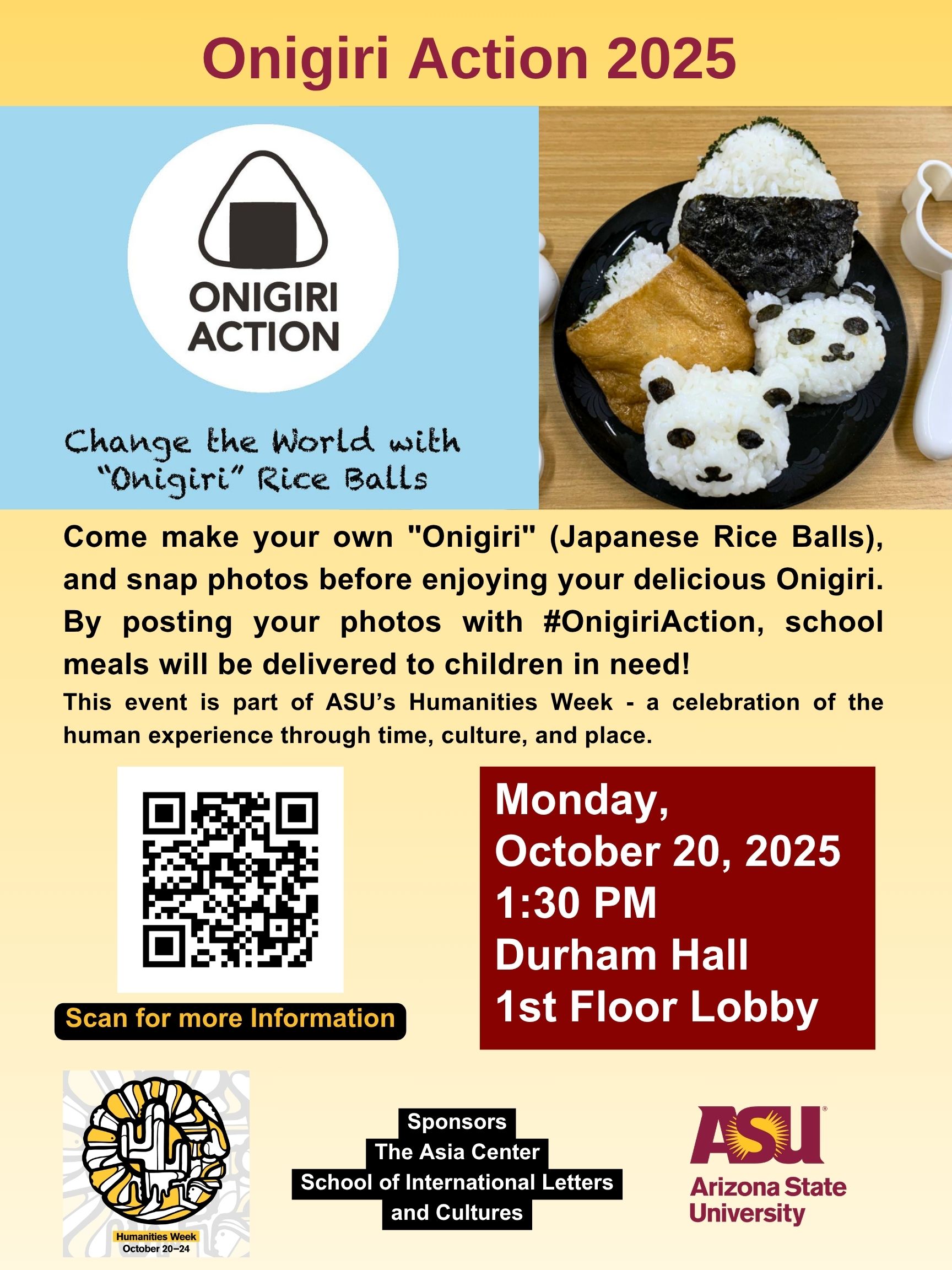 Come make your own "Onigiri" (Japanese Rice Balls), and snap photos before enjoying your delicious Onigiri. By posting your photos with #OnigiriAction, school meals will be delivered to children in need! It is free and open to everyone—all are encouraged to participate.